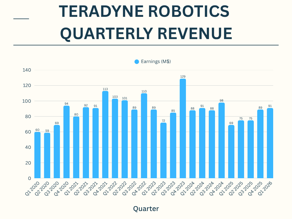 Teradyne Robotics, which includes collaborative robot arm maker Universal Robots and autonomous mobile robot developer Mobile Industrial Robots, this week said it brought in $91 million in the first quarter of 2026.